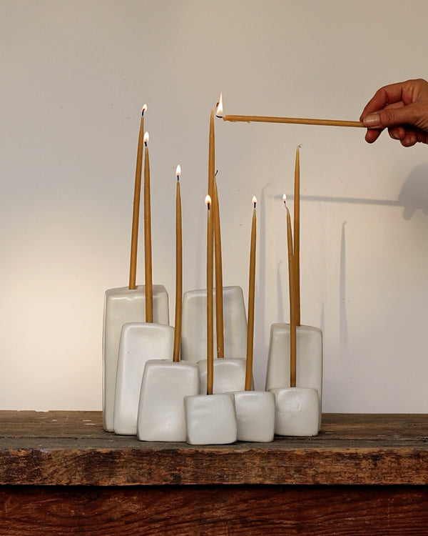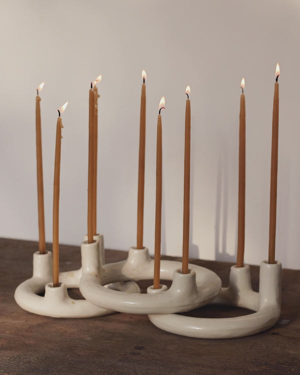Our collection features beloved classics alongside new, unique pieces, including the Ribbon Menorah, a modern and elegant handcrafted piece that celebrates the flow of light and can also serve as a sculptural object throughout the year. Alongside it, you will find playful touches like the spinning dreidel, scented candles made in collaboration with Zach Candles, and a beautifully designed olive oil bottle, perfect for Hanukkah and practical all year round.