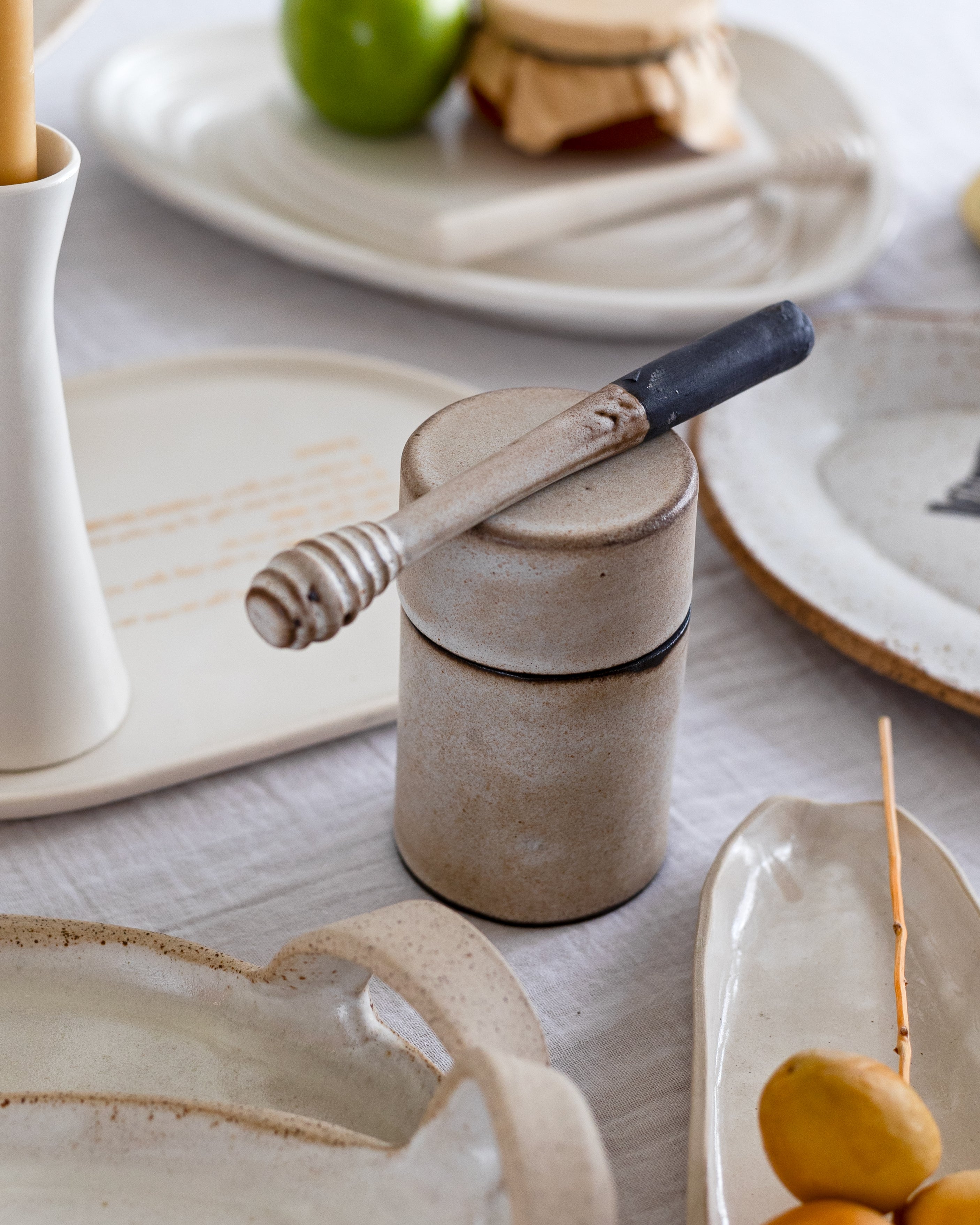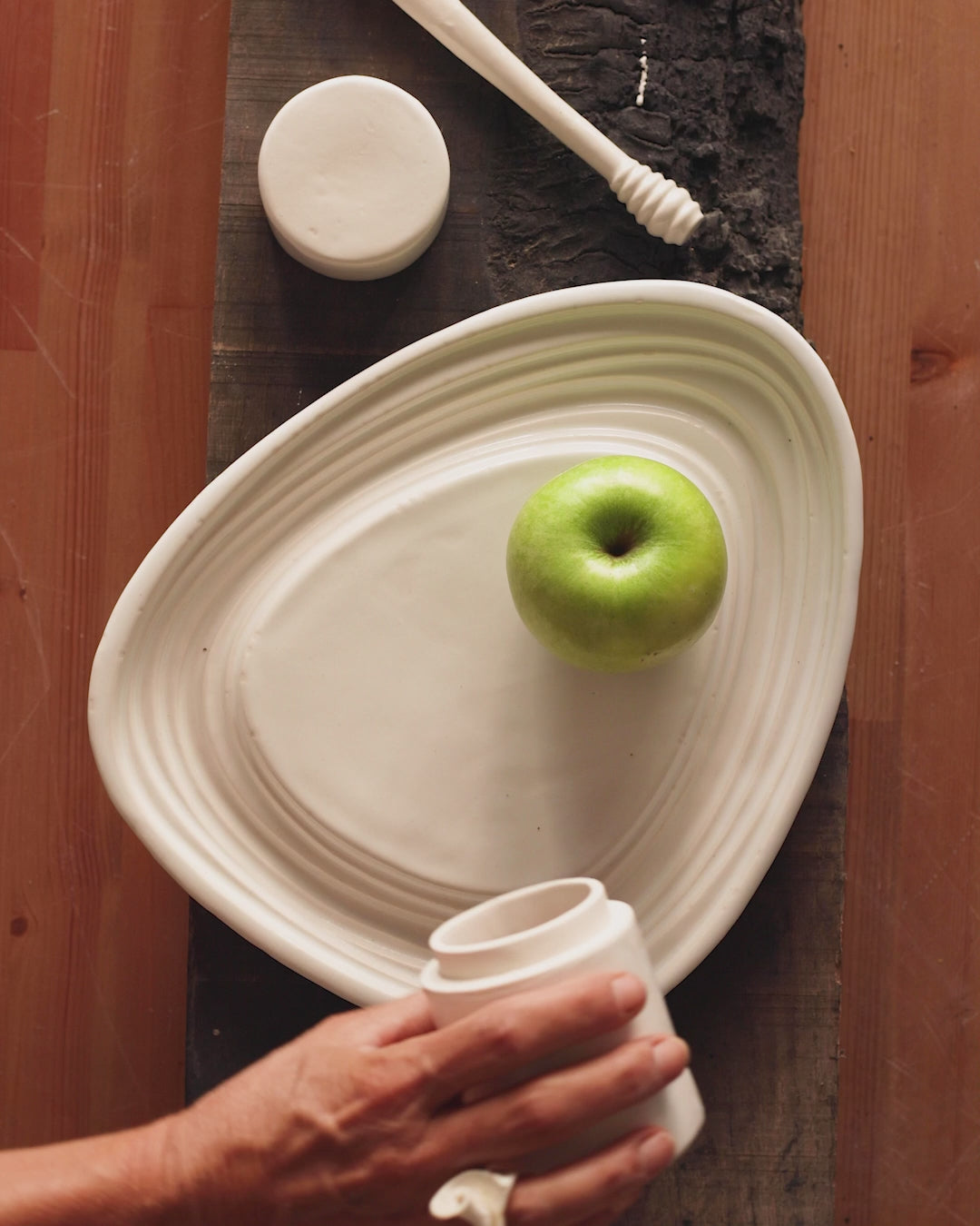 Apple in honey bundle a perfect holiday gift that includes the Topography plate, honey jar and honey stick.