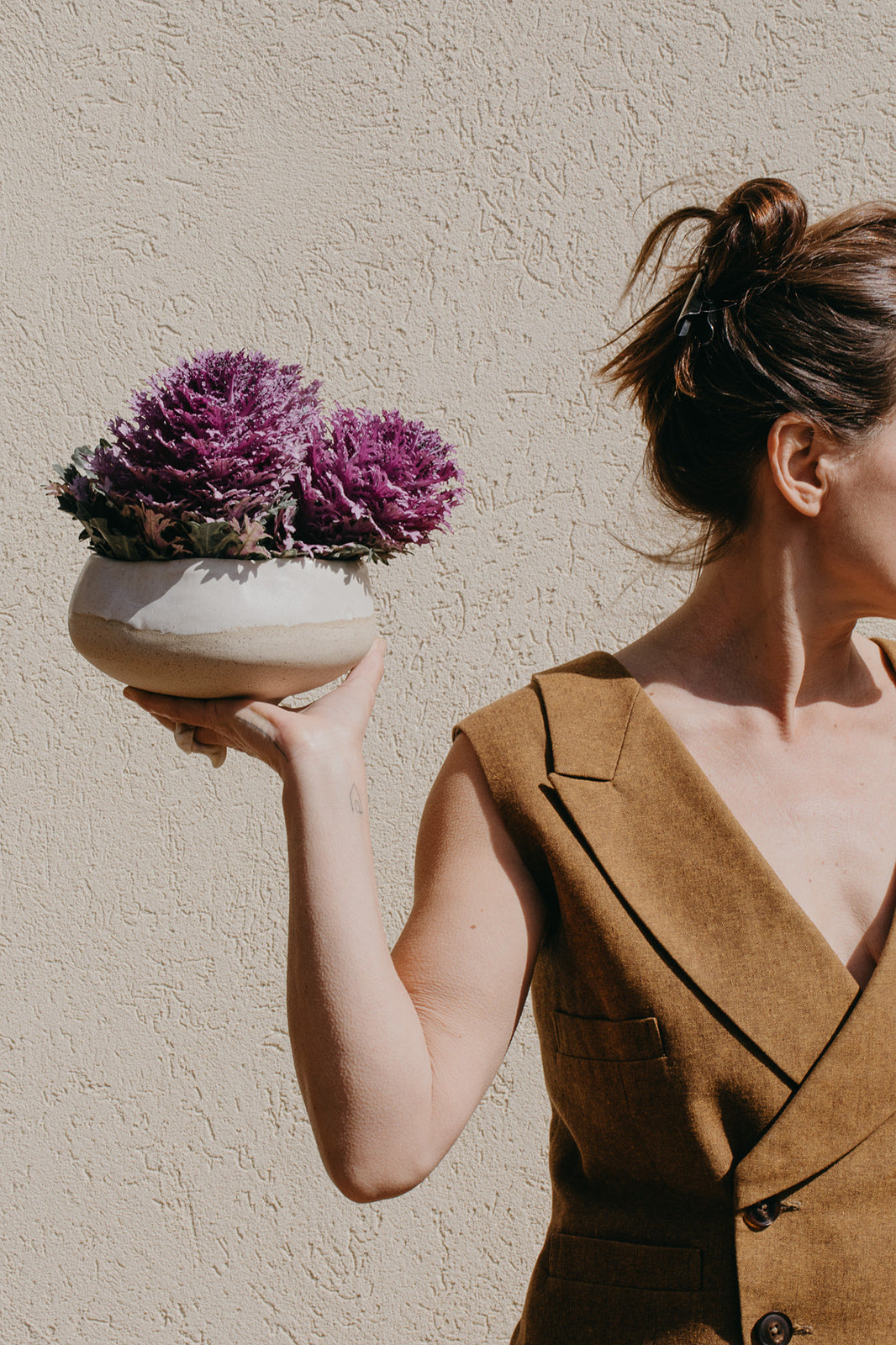 Its soft, organic silhouette gives it a natural presence at the center of the table. Suitable for serving generous salads, grains, rice dishes, fruit, or shared main courses. The balanced depth allows it to function both as a serving bowl and as a substantial fruit bowl.